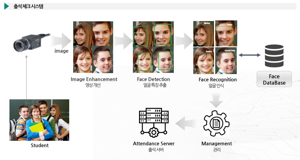 학교나 사무실에서 출석을 위한 얼굴 인식 시스템 입니다.