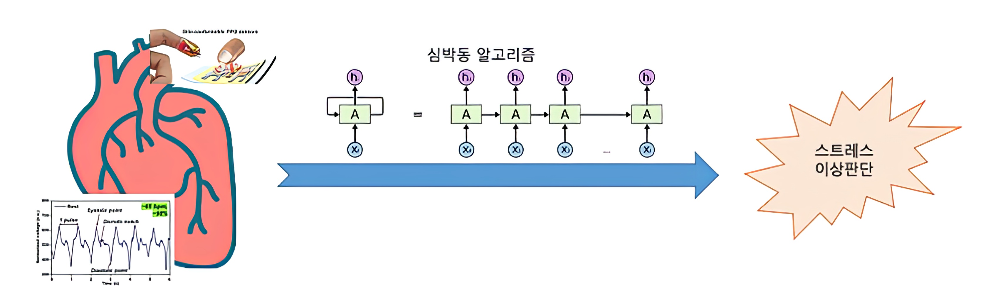 심박동 측정 및 자체 알고리즘을 통해 스트레스 수치의 차이 여부를 판단합니다.