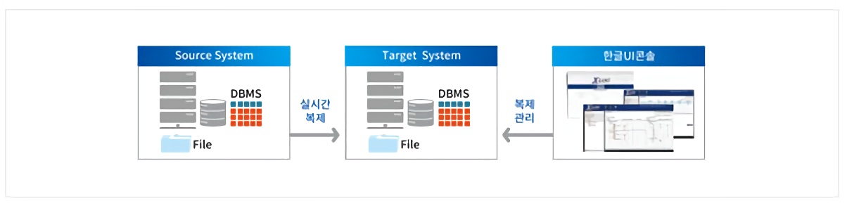 - 운영(Source) 서버의 DBMS 및 파일 데이터를 복제(Target) 서버로 실시간 복제 수행합니다.